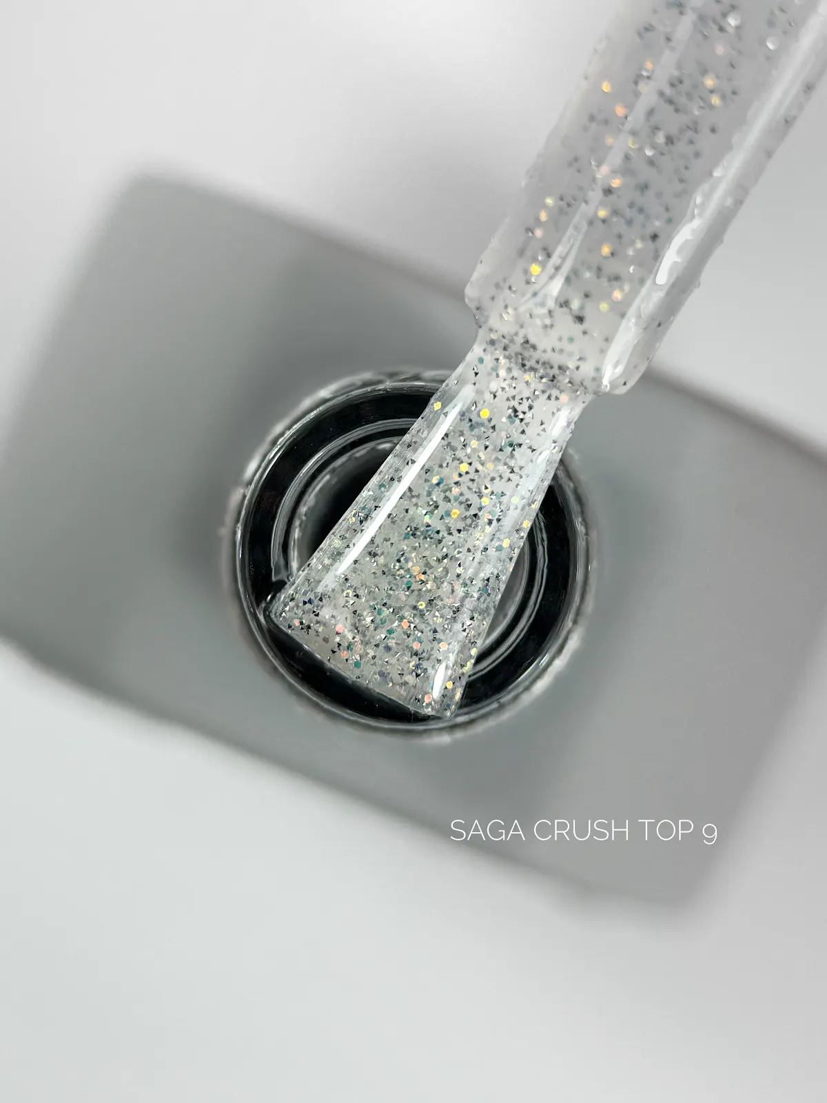 - „Crush top 2 - tai permatomas topas su dideliais holografiniais jukos dribsniais, primenančiais perlamutrinį spindesį. Jukos dribsniai yra subtilios struktūros, todėl tepami tolygiai ir nesukuria nelygumų.